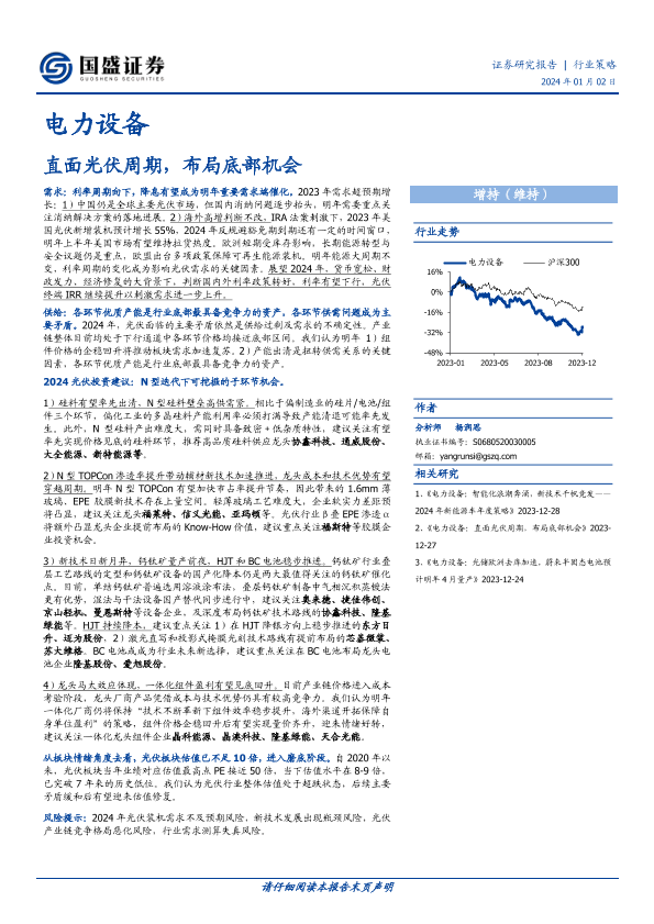 【国盛证券】【20240102】电力设备行业策略:直面光伏周期,布局底部机会-27页