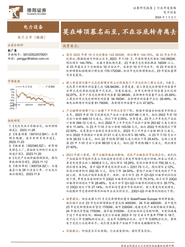 【德邦证券】【20240102】电力设备行业年度策略:莫在峰顶慕名而至,不在谷底转身离去-21页