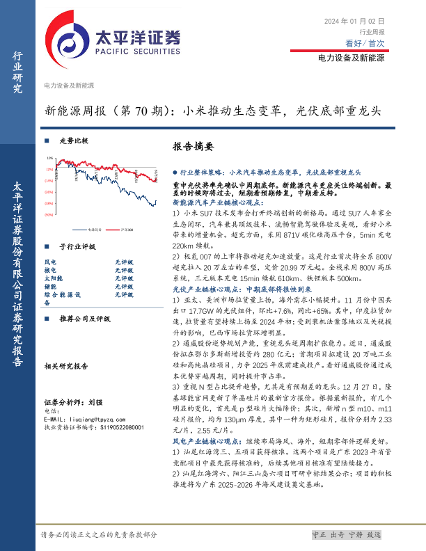 【太平洋证券】【20240102】20240102-太平洋-新能源周报(第70期):小米推动生态变革,光伏底部重龙头-31页