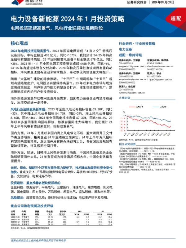 【国信证券】【20240103】电力设备新能源2024年1月投资策略:电网投资延续高景气,风电行业迎接发展新阶段-22页