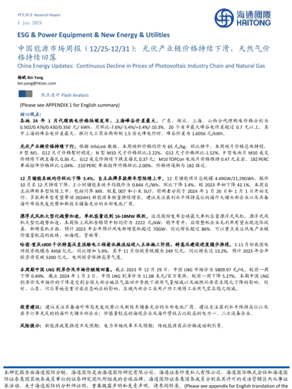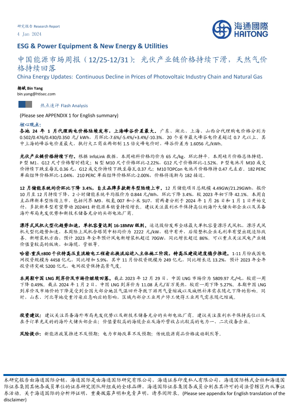 【海通国际】【20240104】中国能源市场周报(12/25-12/31):光伏产业链价格持续下滑,天然气价格持续回落-29页