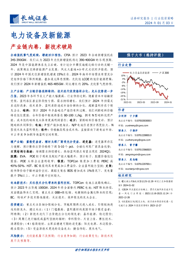 【长城证券】【20240103】电力设备及新能源行业投资策略:产业链内卷,新技术破局-37页