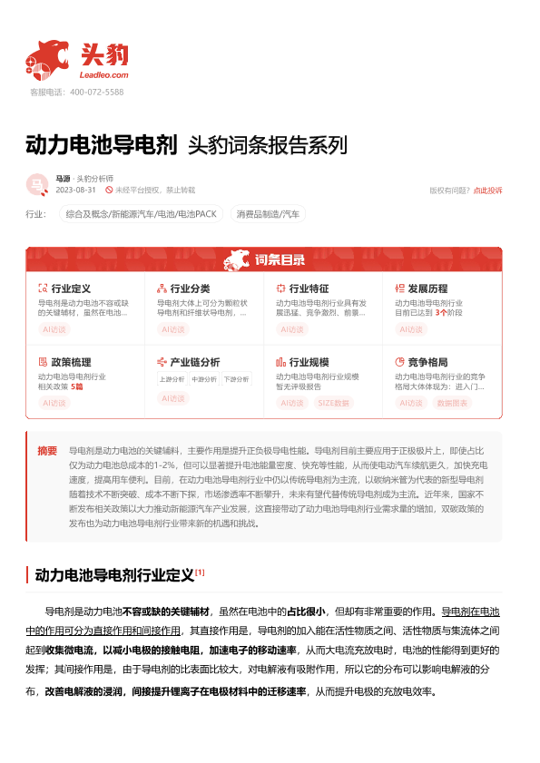 【头豹研究院】【20230831】动力电池导电剂 头豹词条报告系列-19页