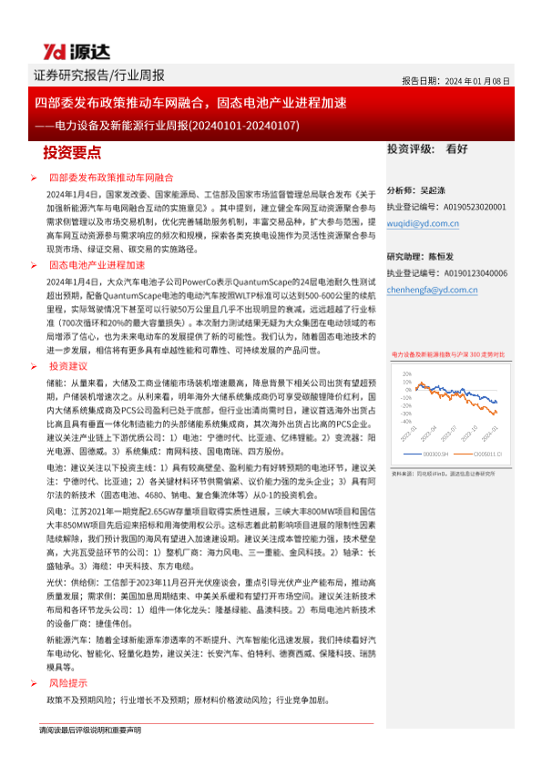 【源达信息】【20240108】20240108-源达信息-电力设备及新能源行业周报:四部委发布政策推动车网融合,固态电池产业进程加速-10页