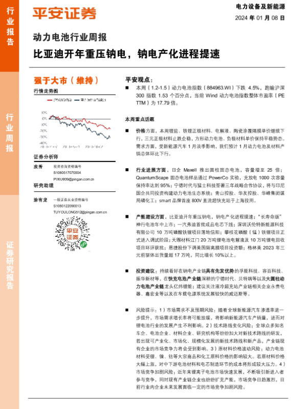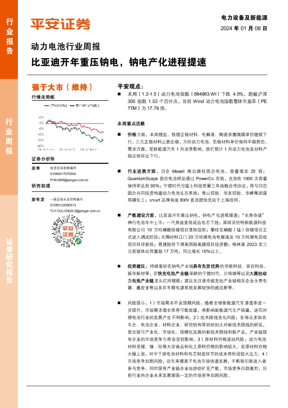 【平安证券】【20240108】20240108-平安证券-动力电池行业周报:比亚迪开年重压钠电,钠电产化进程提速-10页