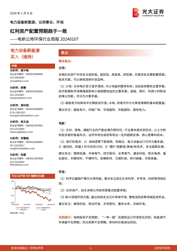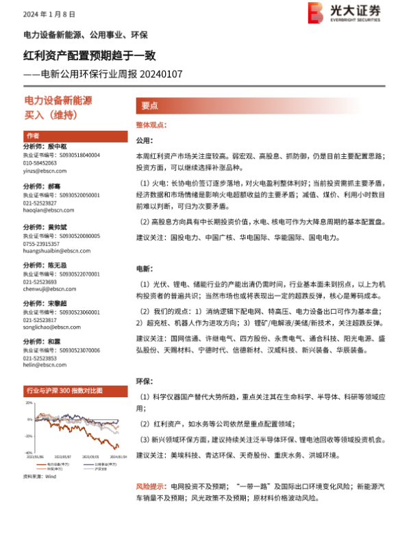 【光大证券】【20240108】电新公用环保行业周报:红利资产配置预期趋于一致-26页