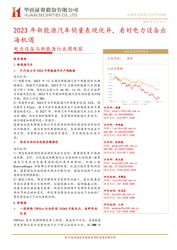 【华西证券】【20240113】20240113-华西证券-电力设备与新能源行业周观察:2023年新能源汽车销量表现优异,看好电力设备出海机遇-25页