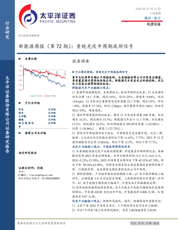 【太平洋证券】【20240115】20240115-太平洋-新能源周报(第72期):重视光伏中周期底部信号-26页
