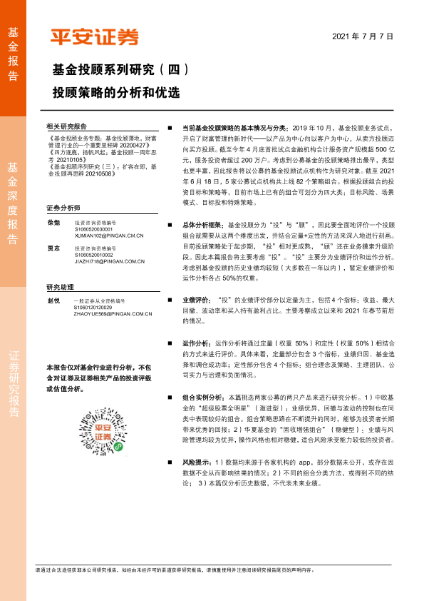 【平安证券】【20210707】基金投顾系列研究(四):投顾策略的分析和优选-18页