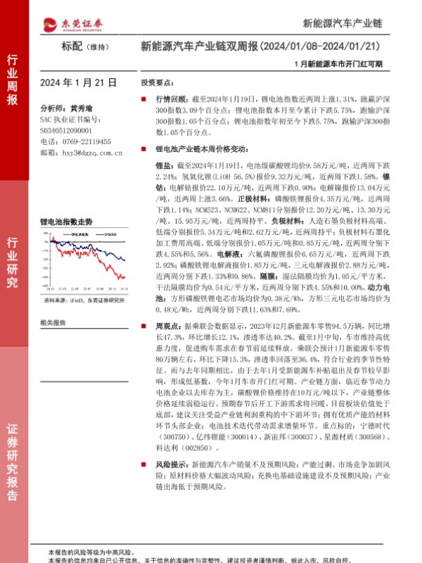 【东莞证券】【20240121】新能源汽车产业链双周报:1月新能源车市开门红可期-13页