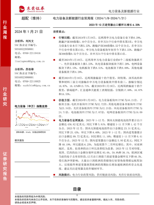 【东莞证券】【20240121】电力设备及新能源行业双周报:2023年12月逆变器出口额环比增长6.25%-13页