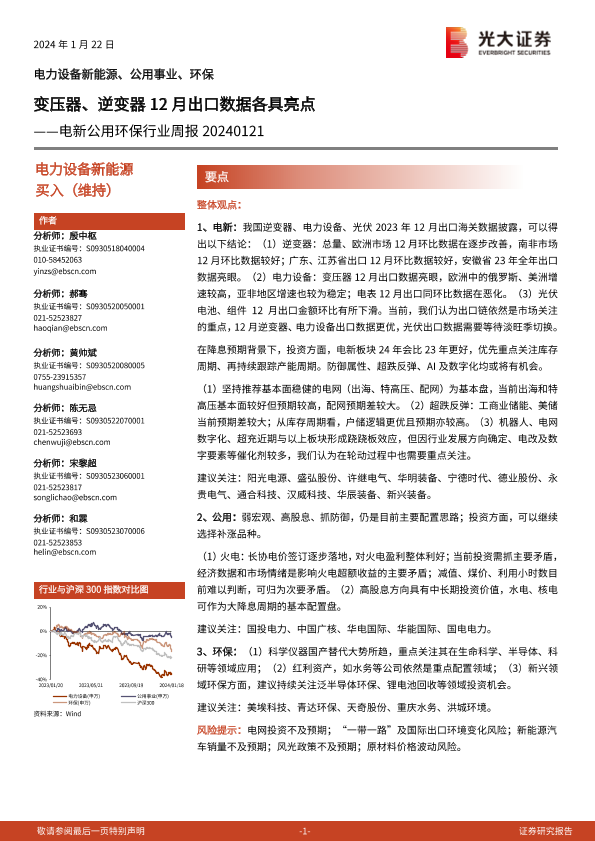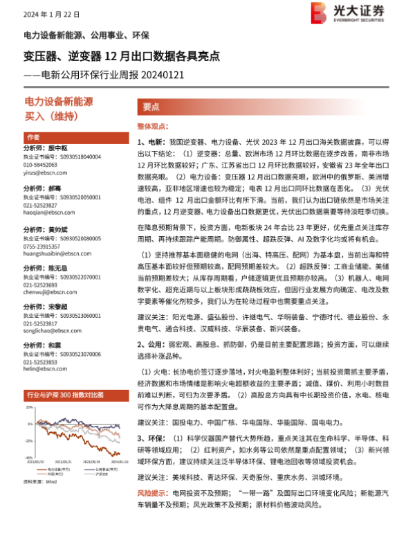【光大证券】【20240122】电新公用环保行业周报:变压器、逆变器12月出口数据各具亮点-25页