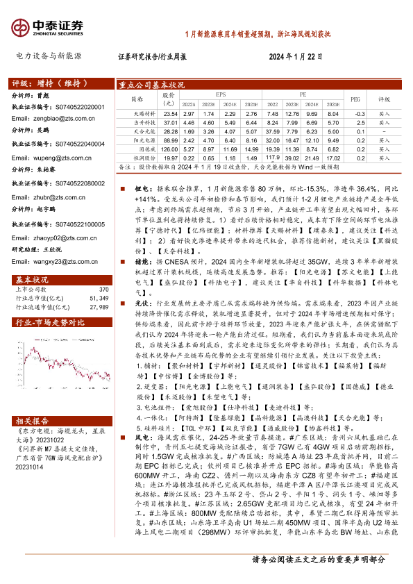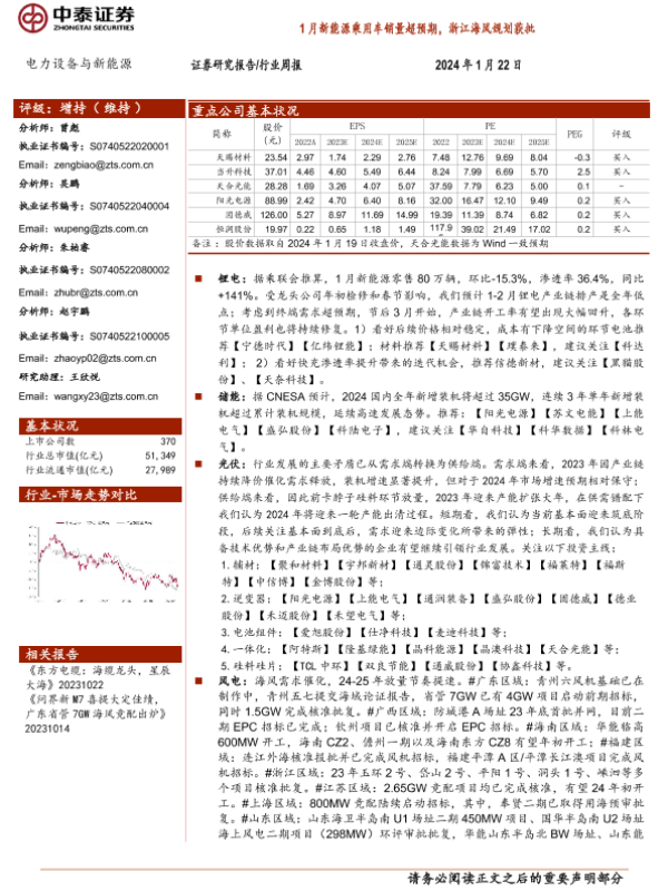【中泰证券】【20240122】1月新能源乘用车销量超预期,浙江海风规划获批-32页