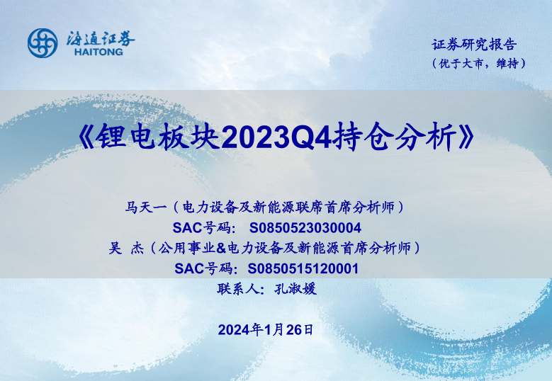【海通证券】【20240126】锂电板块2023Q4持仓分析-22页