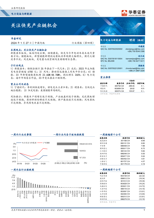 【华泰证券】【20240127】电力设备与新能源行业周报(第四周):关注快充产业链机会-18页