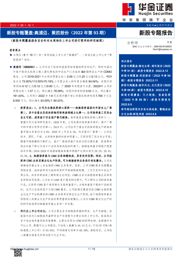 【华金证券】【20220816】新股专题覆盖:奥浦迈、聚胶股份(2022年第93期)-15页