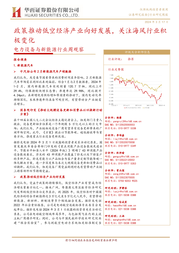 【华西证券】【20240317】电力设备与新能源行业周观察:政策推动低空经济产业向好发展,关注海风行业积极变化-26页