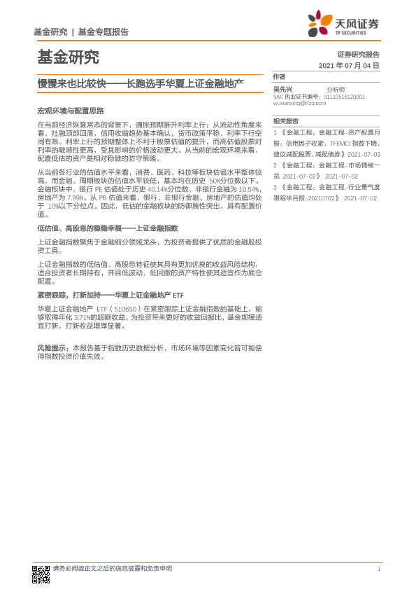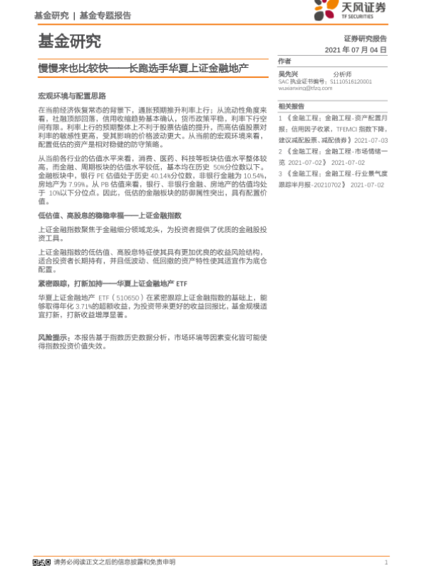 【天风证券】【20210704】基金研究:慢慢来也比较快~长跑选手华夏上证金融地产-20页