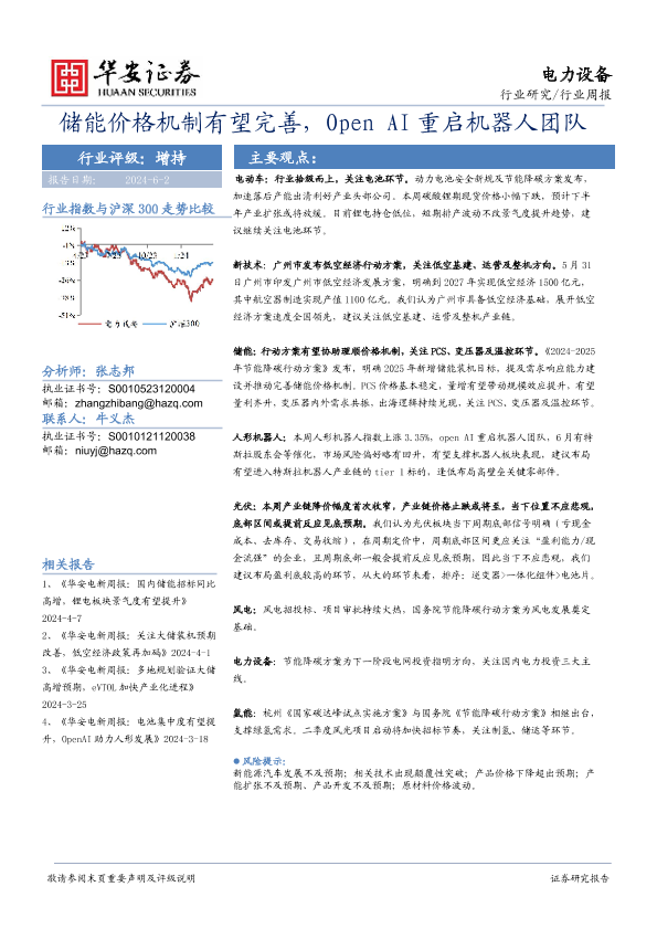【华安证券】【20240602】20240602-华安证券-电力设备行业周报:储能价格机制有望完善,Open AI重启机器人团队-24页