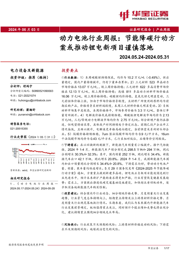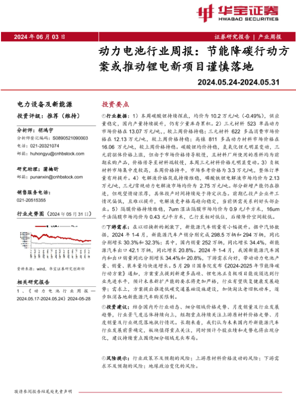 【华宝证券】【20240603】动力电池行业周报:节能降碳行动方案或推动锂电新项目谨慎落地-17页