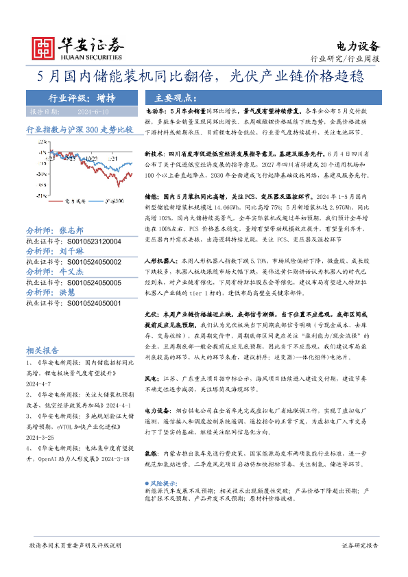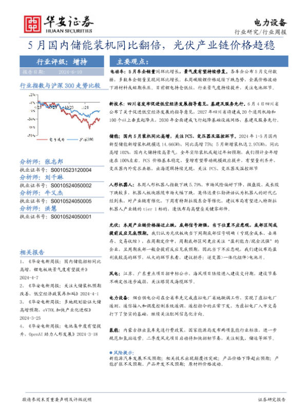【华安证券】【20240610】20240610-华安证券-电力设备行业周报:5月国内储能装机同比翻倍,光伏产业链价格趋稳-24页