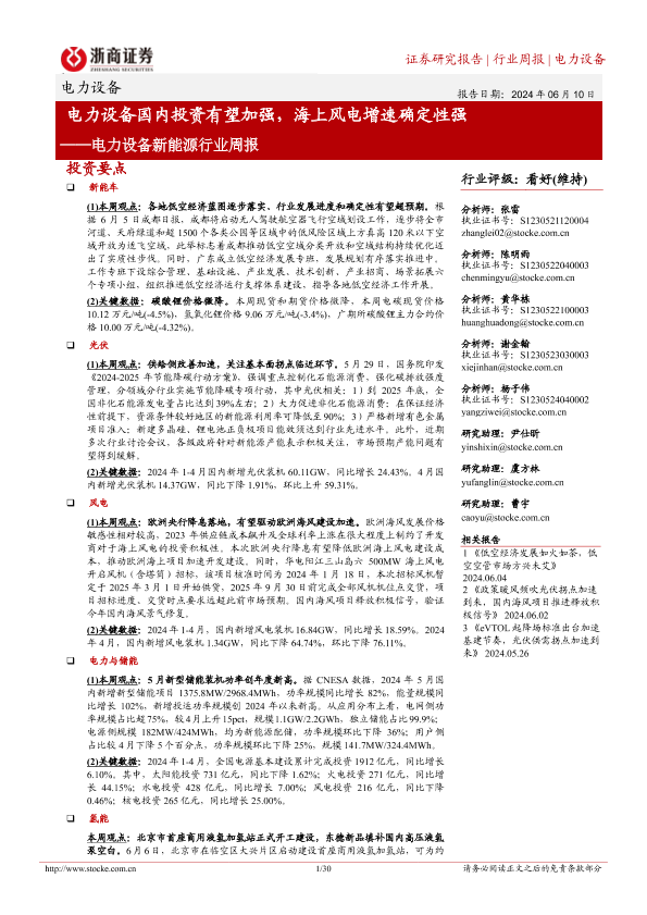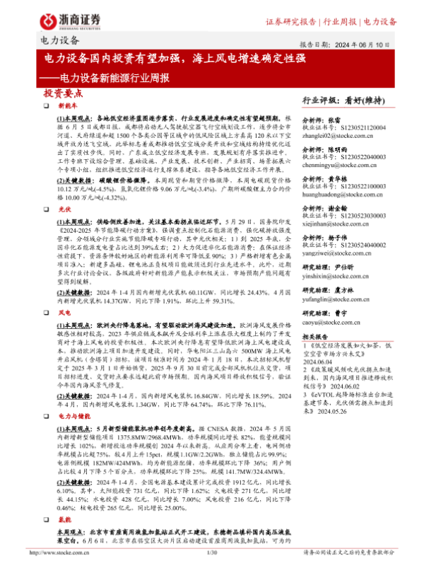 【浙商证券】【20240610】电力设备国内投资有望加强,海上风电增速确定性强-30页