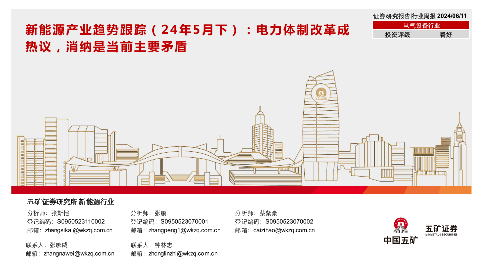 【五矿证券】【20240611】新能源产业趋势跟踪(24年5月下):电力体制改革成热议,消纳是当前主要矛盾-46页