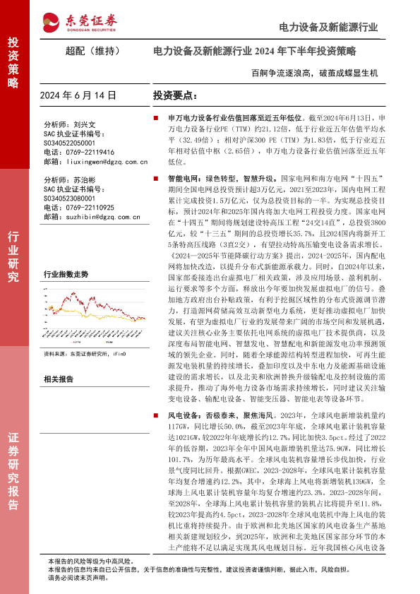 【东莞证券】【20240614】电力设备及新能源行业2024年下半年投资策略:百舸争流逐浪高,破茧成蝶显生机-64页
