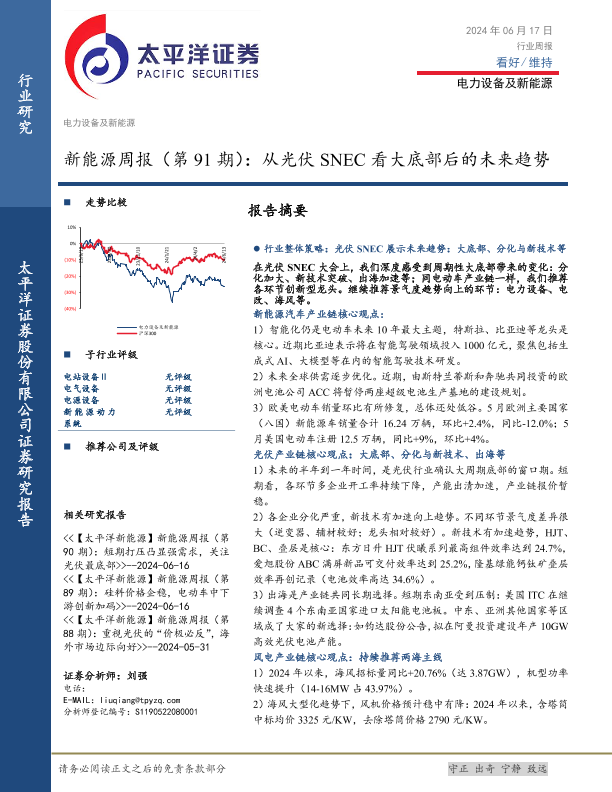 【太平洋证券】【20240617】电力设备及新能源行业新能源周报(第91期):从光伏SNEC看大底部后的未来趋势-29页