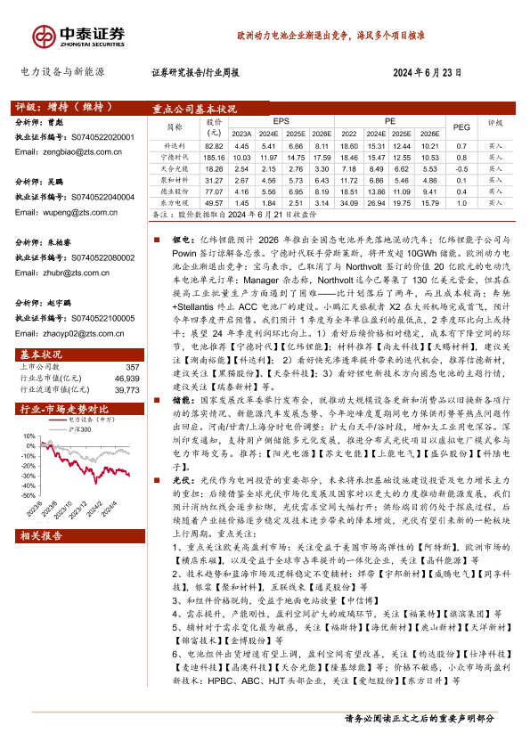 【中泰证券】【20240623】中泰证券-电力设备与新能源行业周报:欧洲动力电池企业渐退出竞争,海风多个项目核准-29页