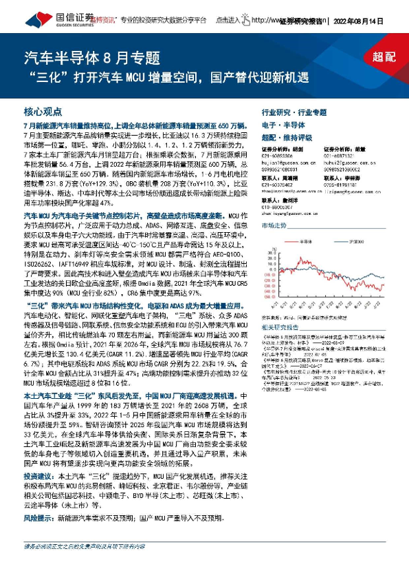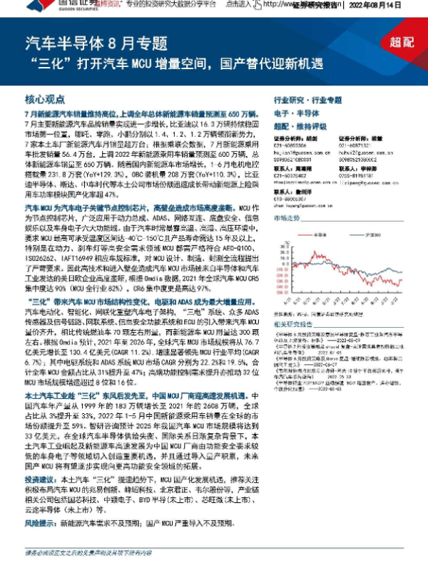 【国信证券】【20220814】汽车半导体行业8月专题:“三化”打开汽车MCU增量空间,国产替代迎新机遇-17页