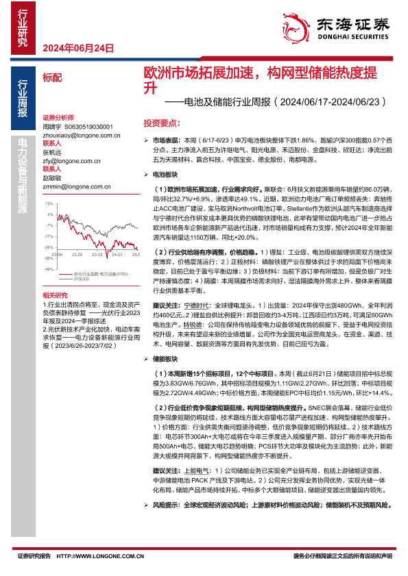 【东海证券】【20240624】20240624-东海证券-电池及储能行业周报:欧洲市场拓展加速,构网型储能热度提升-12页