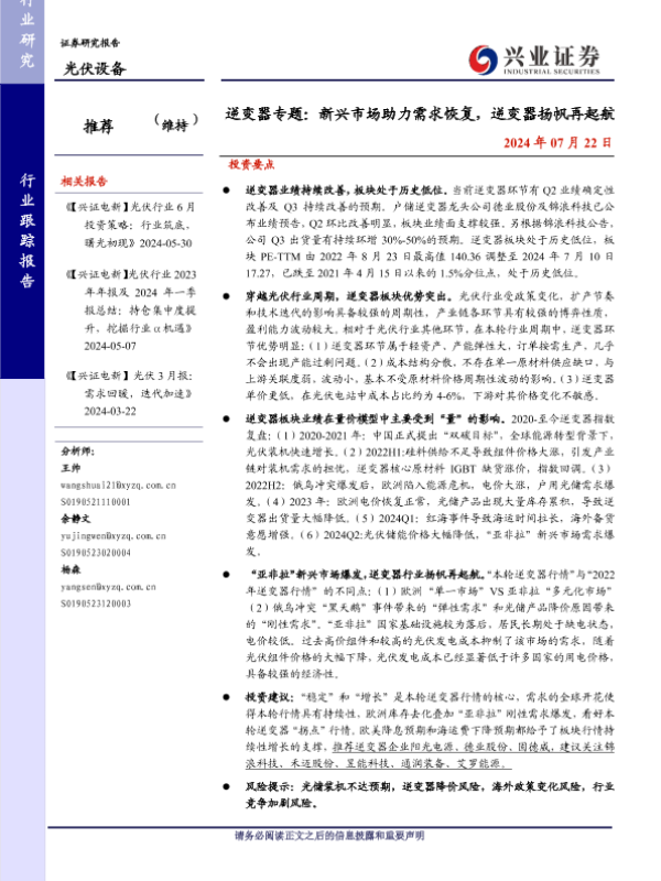 【兴业证券】【20240722】逆变器专题:新兴市场助力需求恢复,逆变器扬帆再起航-14页