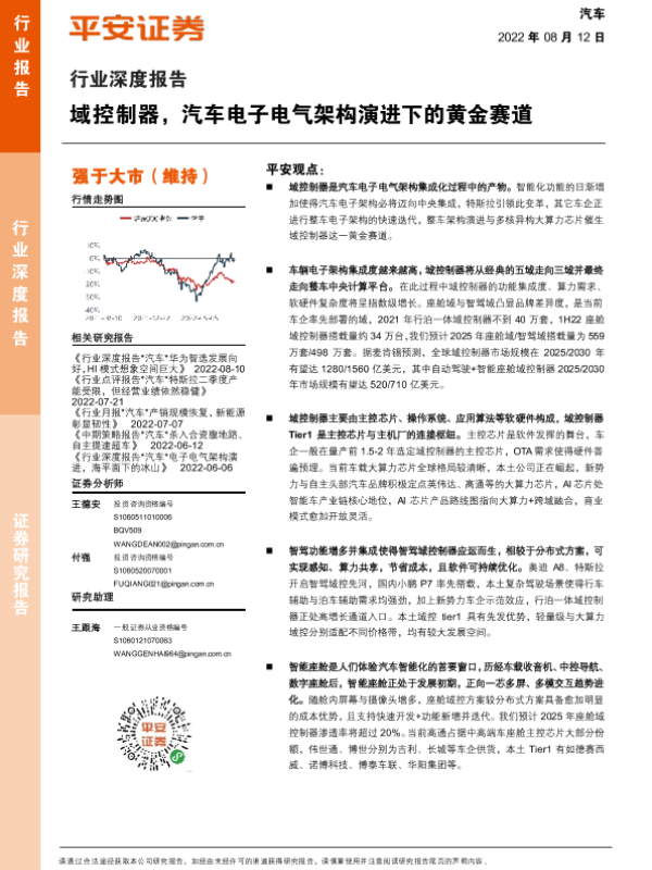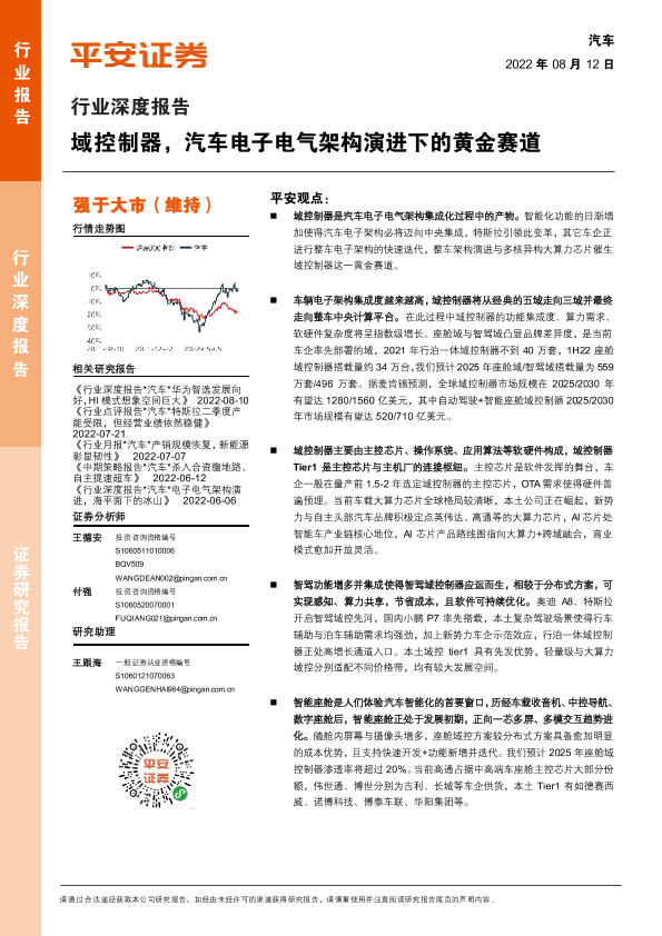 【平安证券】【20220812】域控制器,汽车电子电气架构演进下的黄金赛道-52页