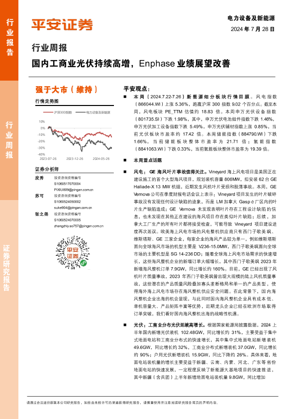 【平安证券】【20240728】电力设备及新能源行业周报:国内工商业光伏持续高增,Enphase业绩展望改善-23页