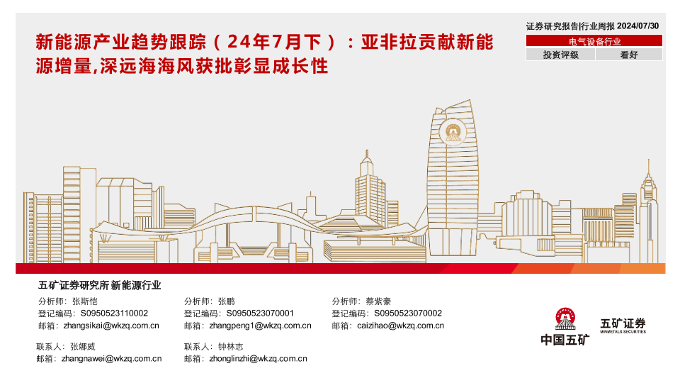 【五矿证券】【20240730】新能源产业趋势跟踪(24年7月下):亚非拉贡献新能源增量,深远海海风获批彰显成长性-44页
