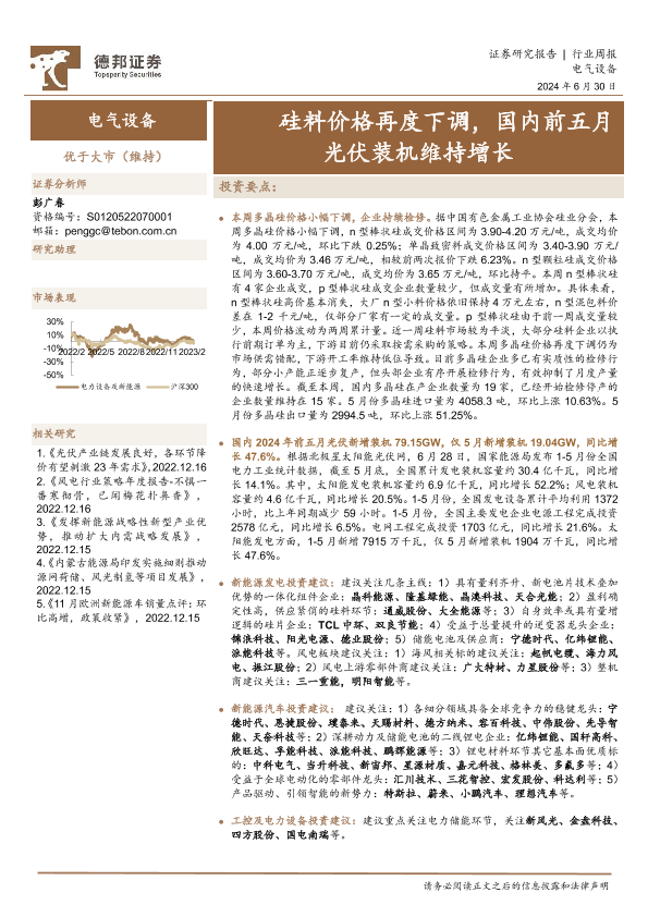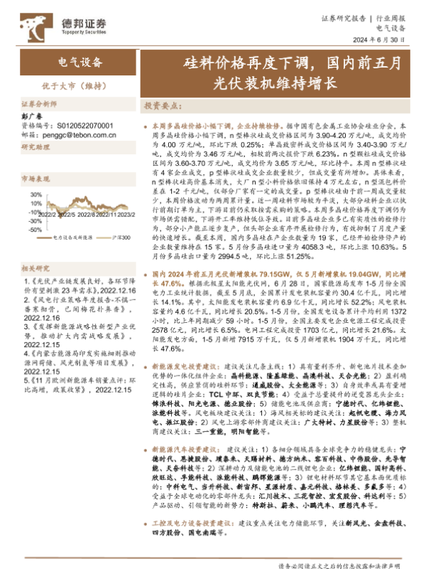 【德邦证券】【20240630】电气设备行业周报:硅料价格再度下调,国内前五月光伏装机维持增长-15页
