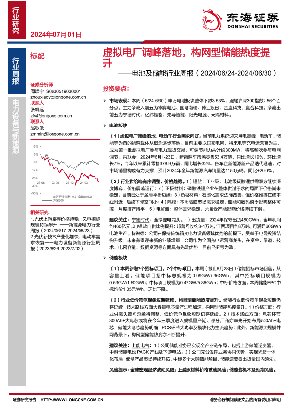 【东海证券】【20240701】20240701-东海证券-电池及储能行业周报:虚拟电厂调峰落地,构网型储能热度提升-12页
