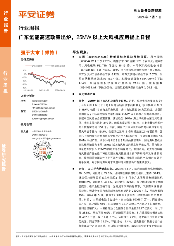 【平安证券】【20240701】电力设备及新能源行业周报:广东氢能高速政策出炉,25MW以上大风机应用提上日程-21页