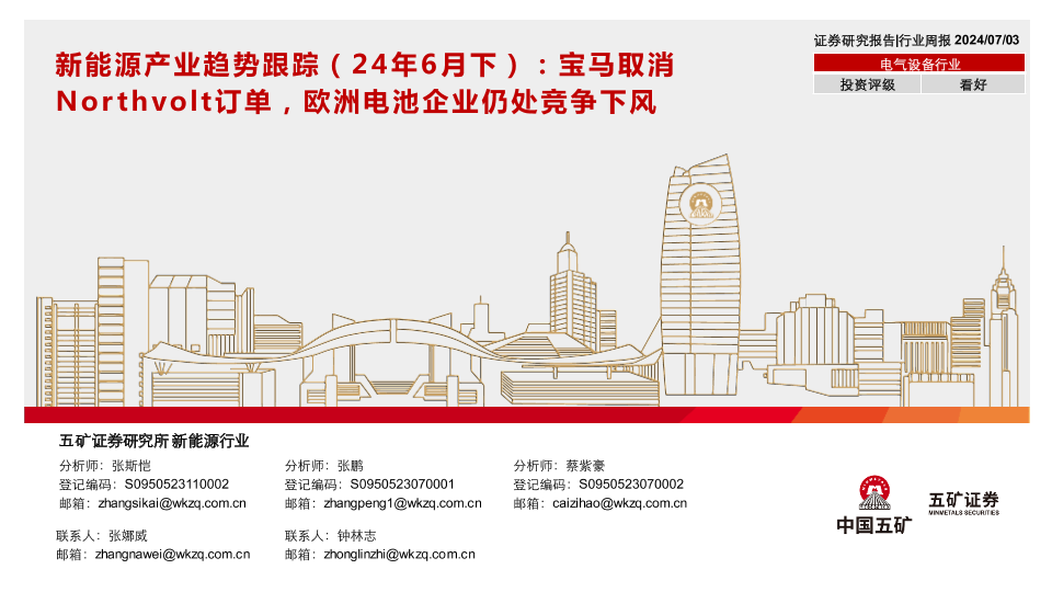 【五矿证券】【20240703】新能源产业趋势跟踪(24年6月下):宝马取消Northvolt订单,欧洲电池企业仍处竞争下风-44页