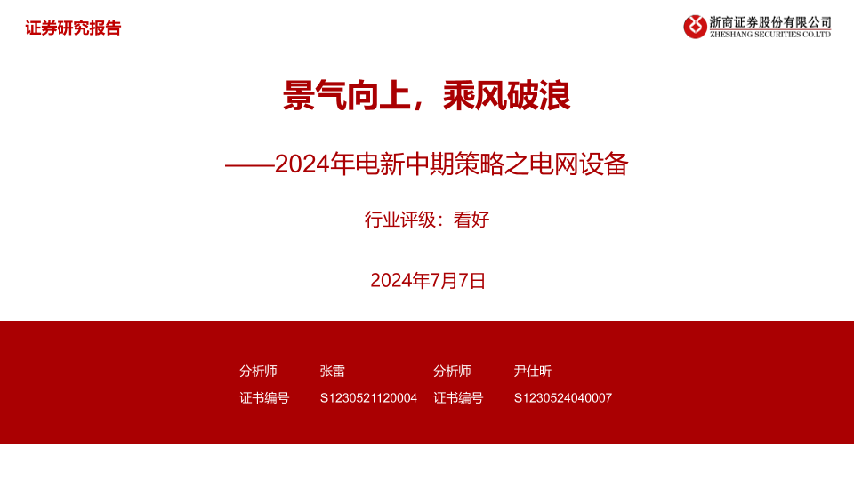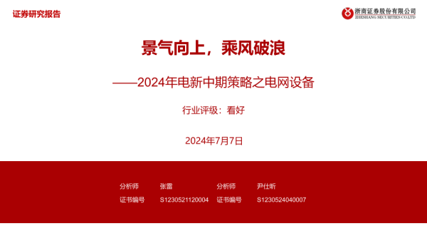 【浙商证券】【20240707】2024年电新中期策略之电网设备:景气向上,乘风破浪-24页