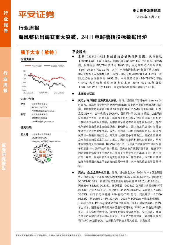 【平安证券】【20240707】电力设备及新能源行业周报:海风整机出海获重大突破,24H1电解槽招投标数据出炉-21页