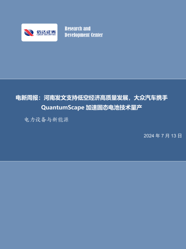【信达证券】【20240713】河南发文支持低空经济高质量发展,大众汽车携手QuantumScape加速固态电池技术量产-10页