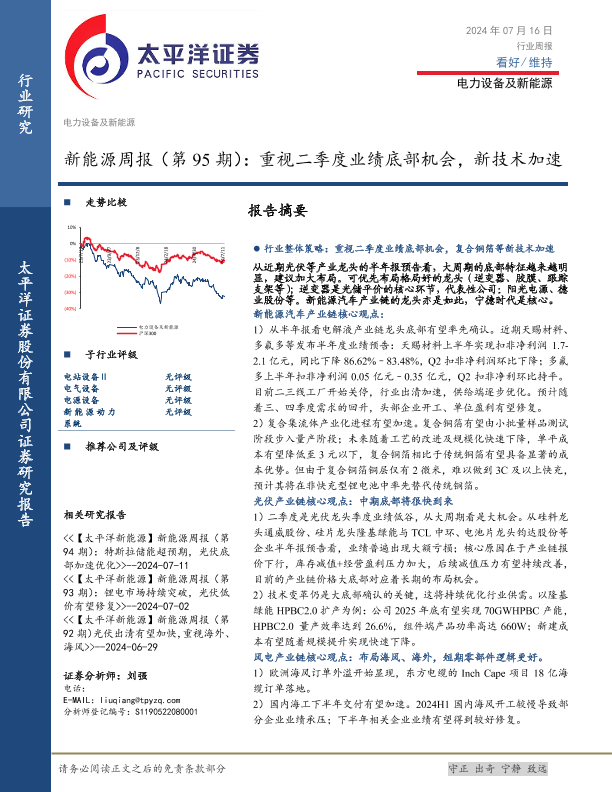【太平洋证券】【20240716】20240716-太平洋-新能源周报(第95期):重视二季度业绩底部机会,新技术加速-38页