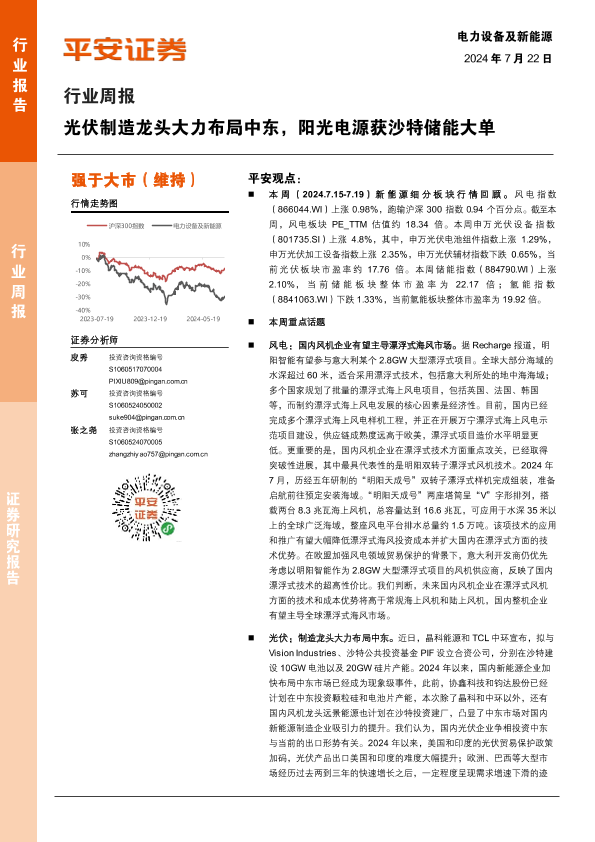 【平安证券】【20240722】电力设备及新能源行业周报:光伏制造龙头大力布局中东,阳光电源获沙特储能大单-22页