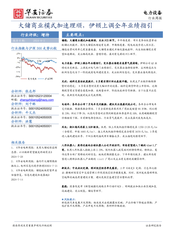 【华安证券】【20240803】大储商业模式加速理顺,伊顿上调全年业绩指引-22页