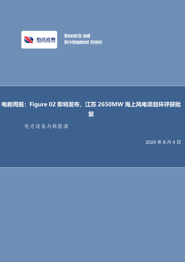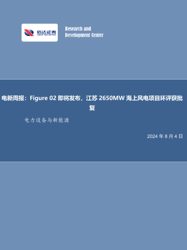 【信达证券】【20240804】电新周报:Figure 02即将发布,江苏2650MW海上风电项目环评获批复-11页