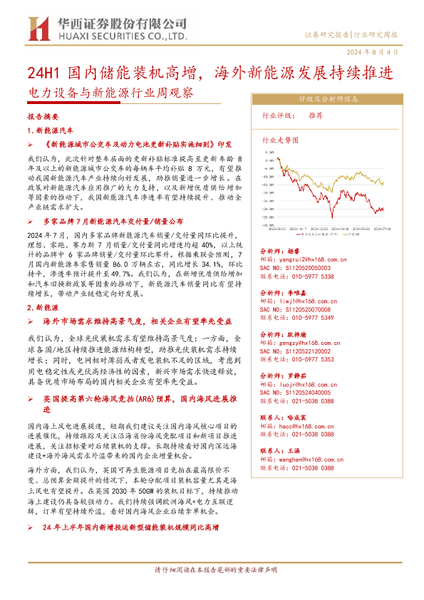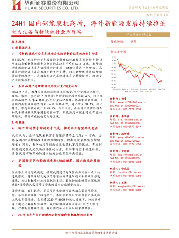 【华西证券】【20240804】24H1国内储能装机高增,海外新能源发展持续推进-26页