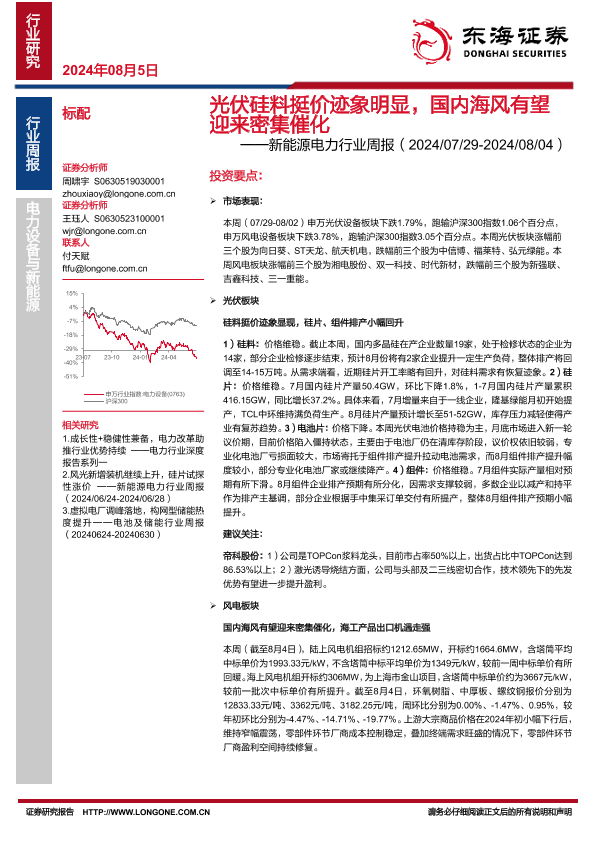 【东海证券】【20240805】20240805-东海证券-新能源电力行业周报:光伏硅料挺价迹象明显,国内海风有望迎来密集催化-17页
