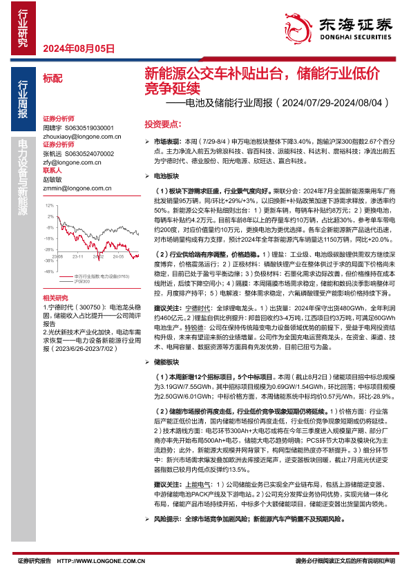 【东海证券】【20240805】20240805-东海证券-电池及储能行业周报:新能源公交车补贴出台,储能行业低价竞争延续-12页
